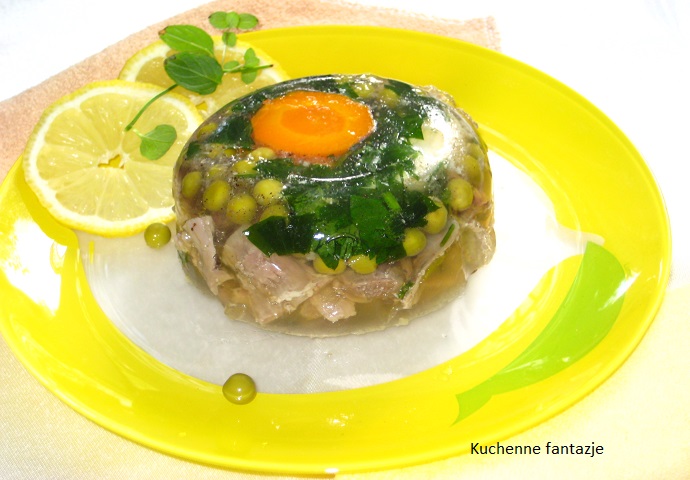 Galaretka z kurzych żołądków i podudzi z indyka.